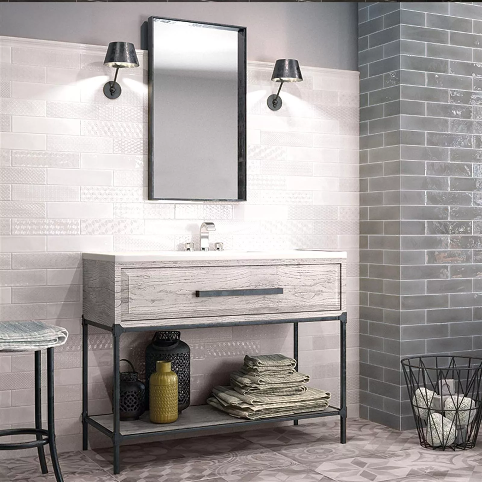 Vzorek Nástěnné Obklady Conway Zvlněné 7,5x30cm Bílá
