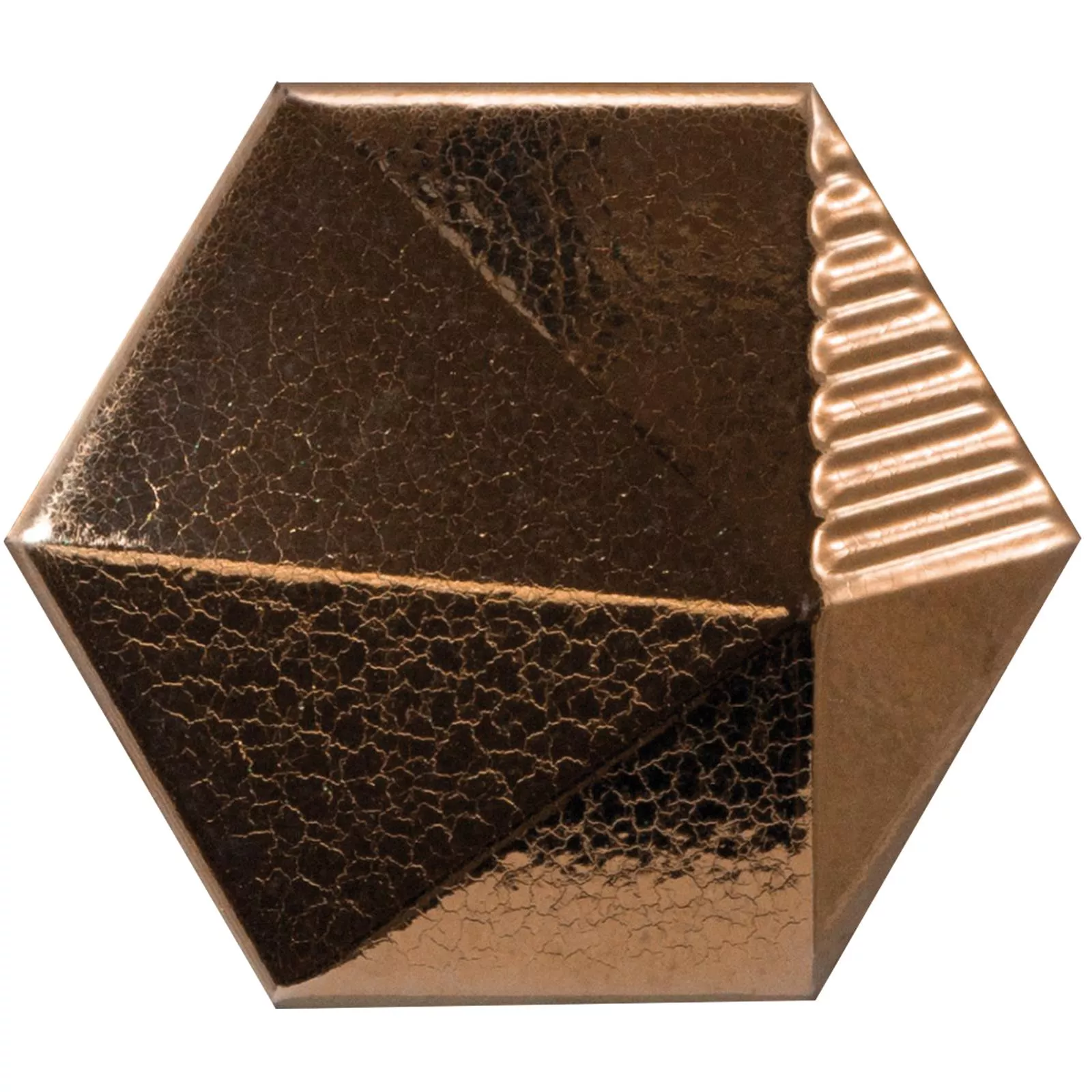 Vzorek Nástěnné Obklady Rockford 3D Šestiúhelník 12,4x10,7cm Měď