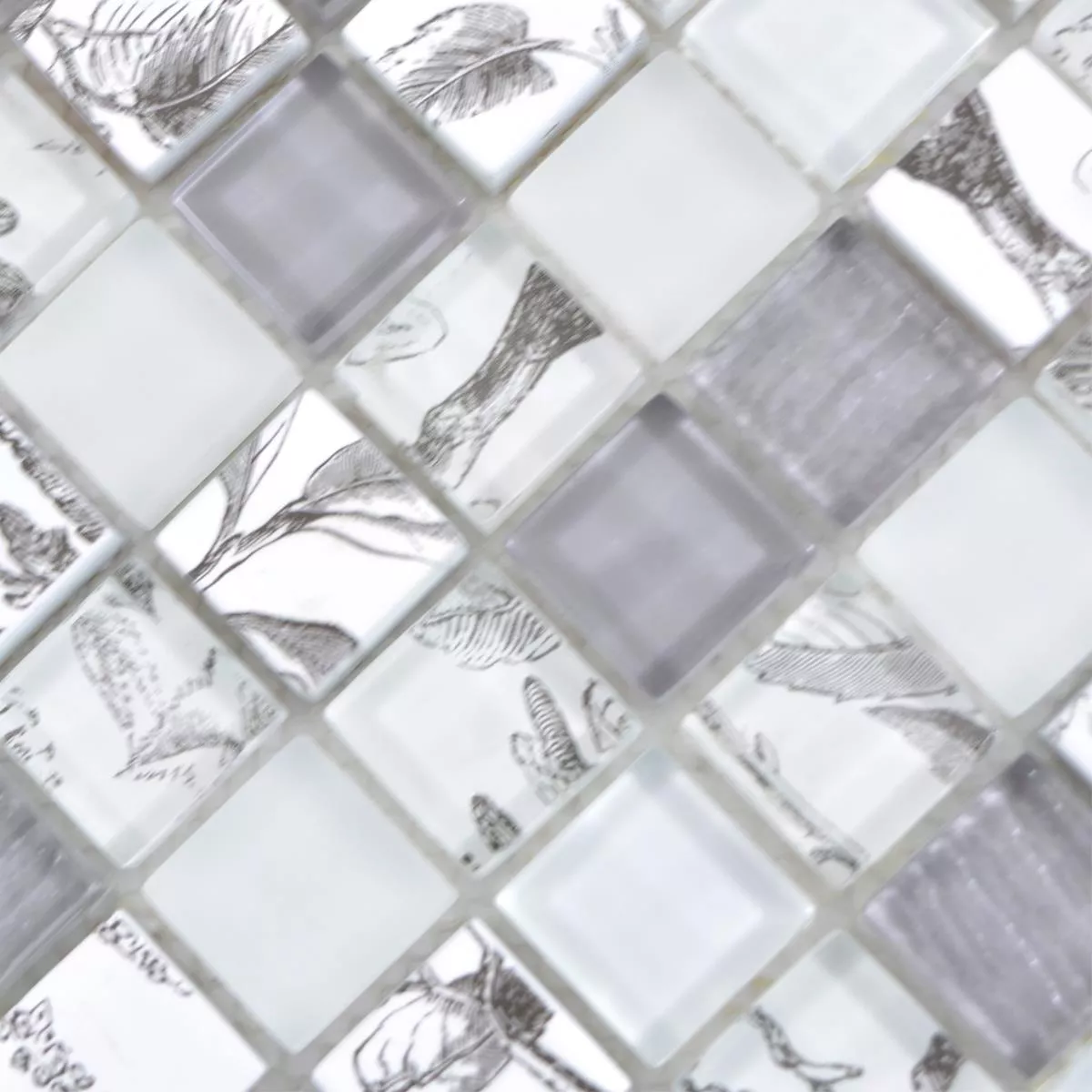 Vzorek Skleněná Mozaika Dlaždice Cornelia Retro Vzhled Bílá Šedá