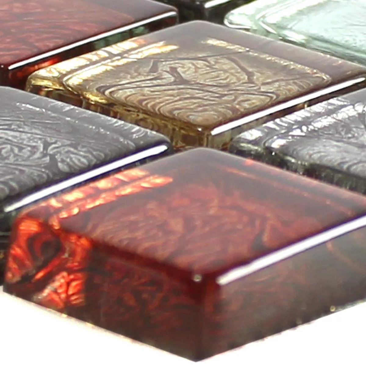 Vzorek Skleněná Mozaika Dlaždice Curlew Červená Hnědá Stříbrná Čtverec