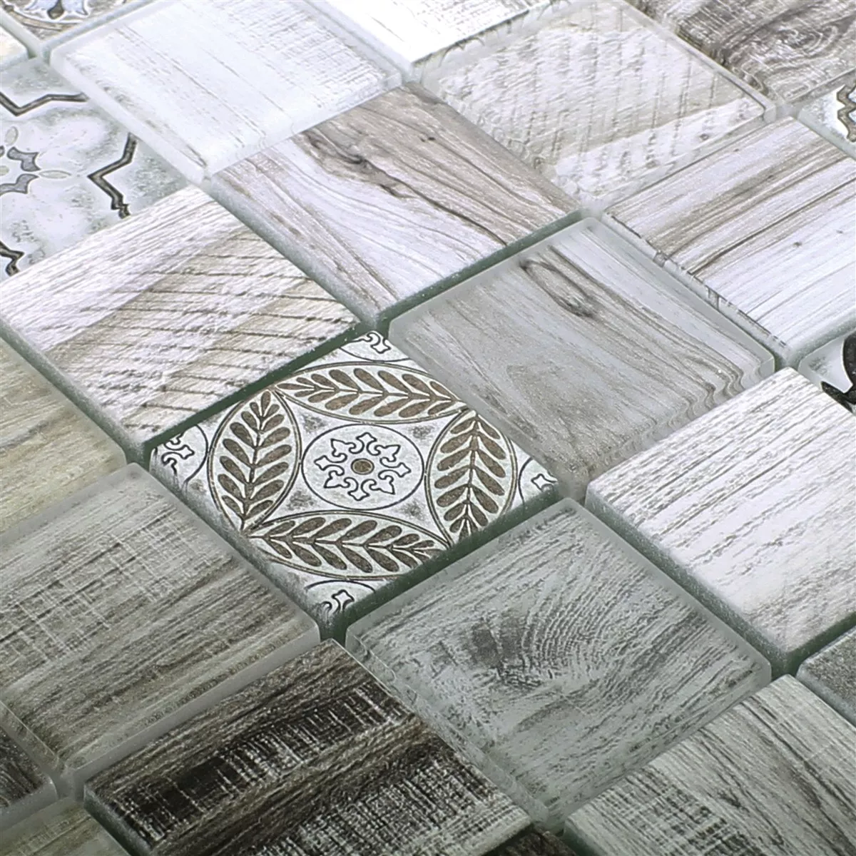 Vzorek Skleněná Mozaika Dlaždice Dřevěný Vzhled Makarska Béžová