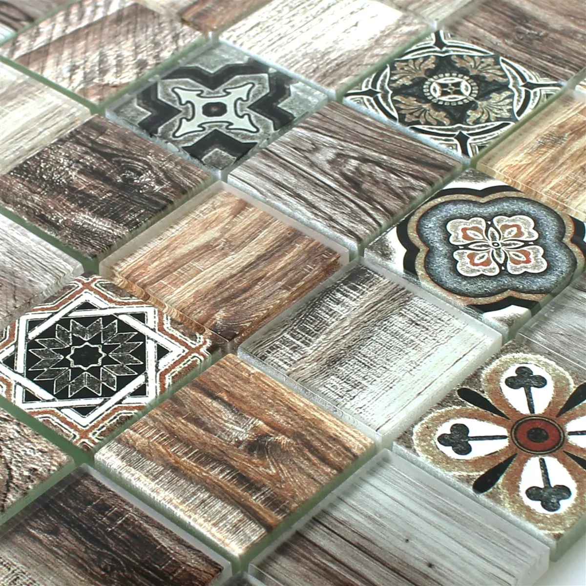 Vzorek Skleněná Mozaika Dlaždice Dřevěný Vzhled Makarska Hnědá