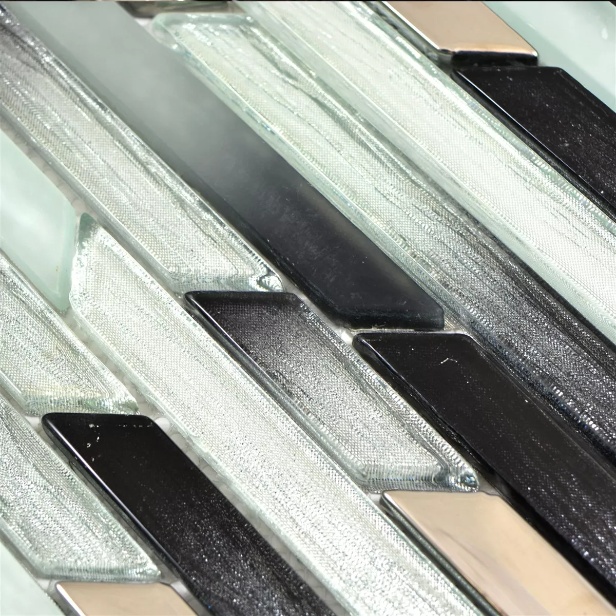 Vzorek Skleněná Mozaika Dlaždice Enrico Černá Stříbrná Skosený