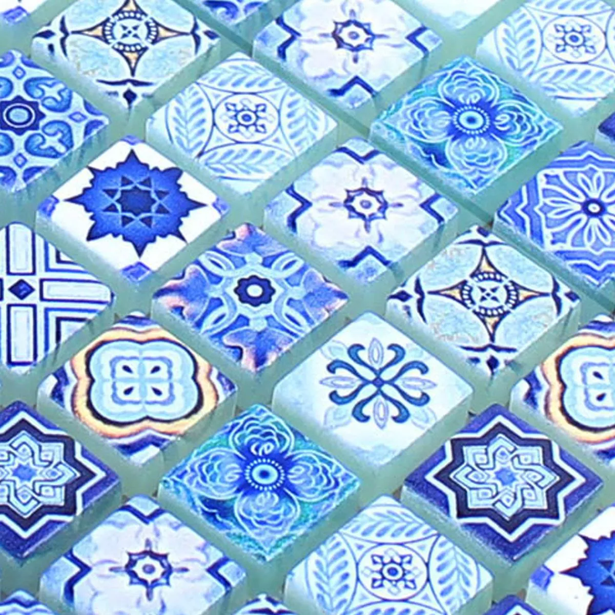 Vzorek Skleněná Mozaika Dlaždice Marrakech Modrá