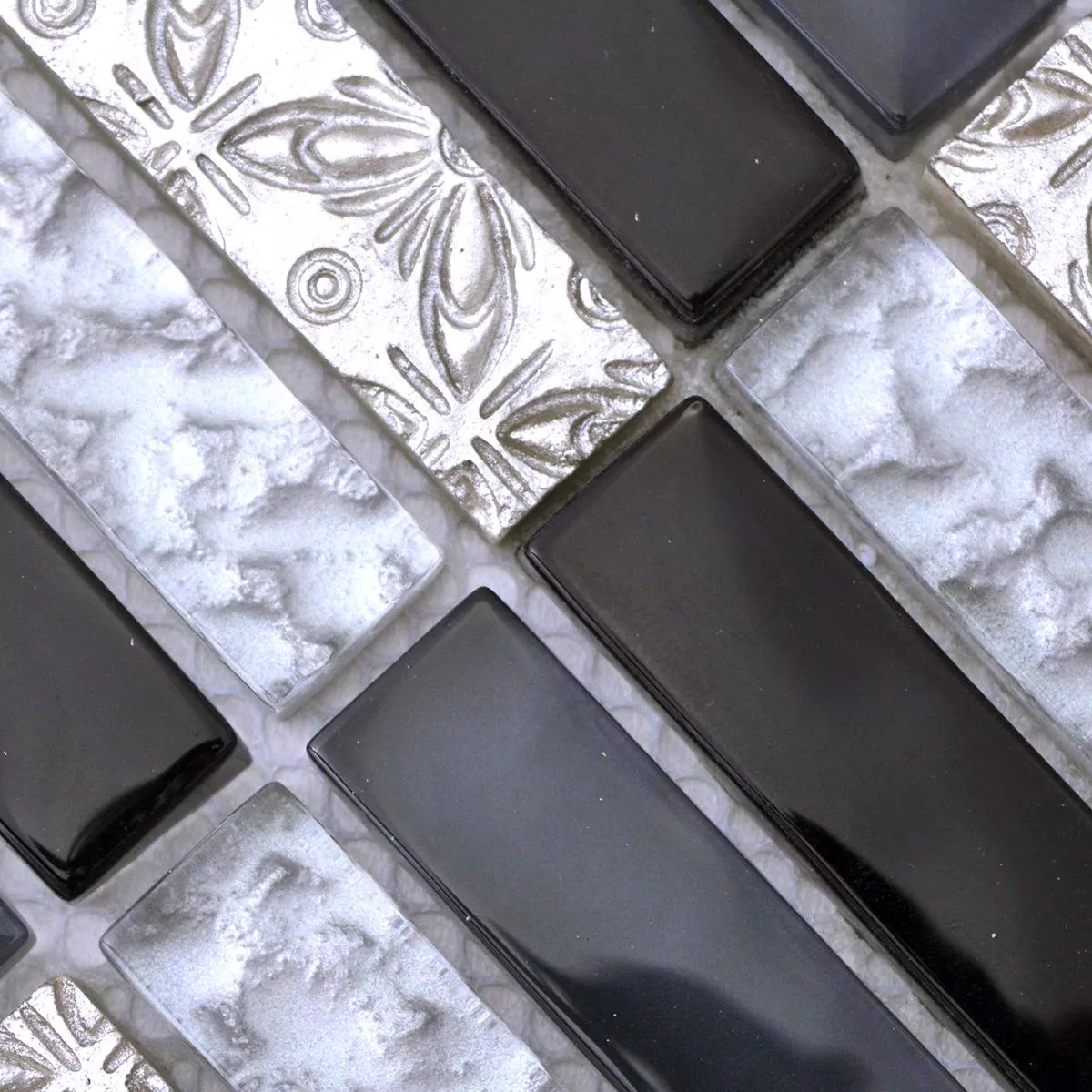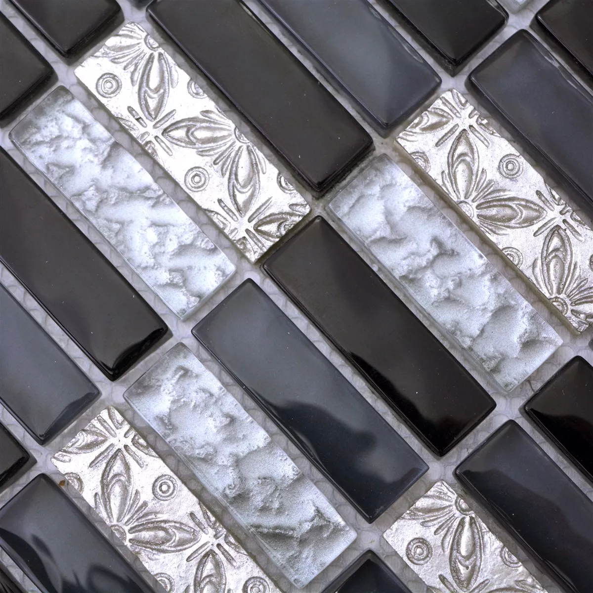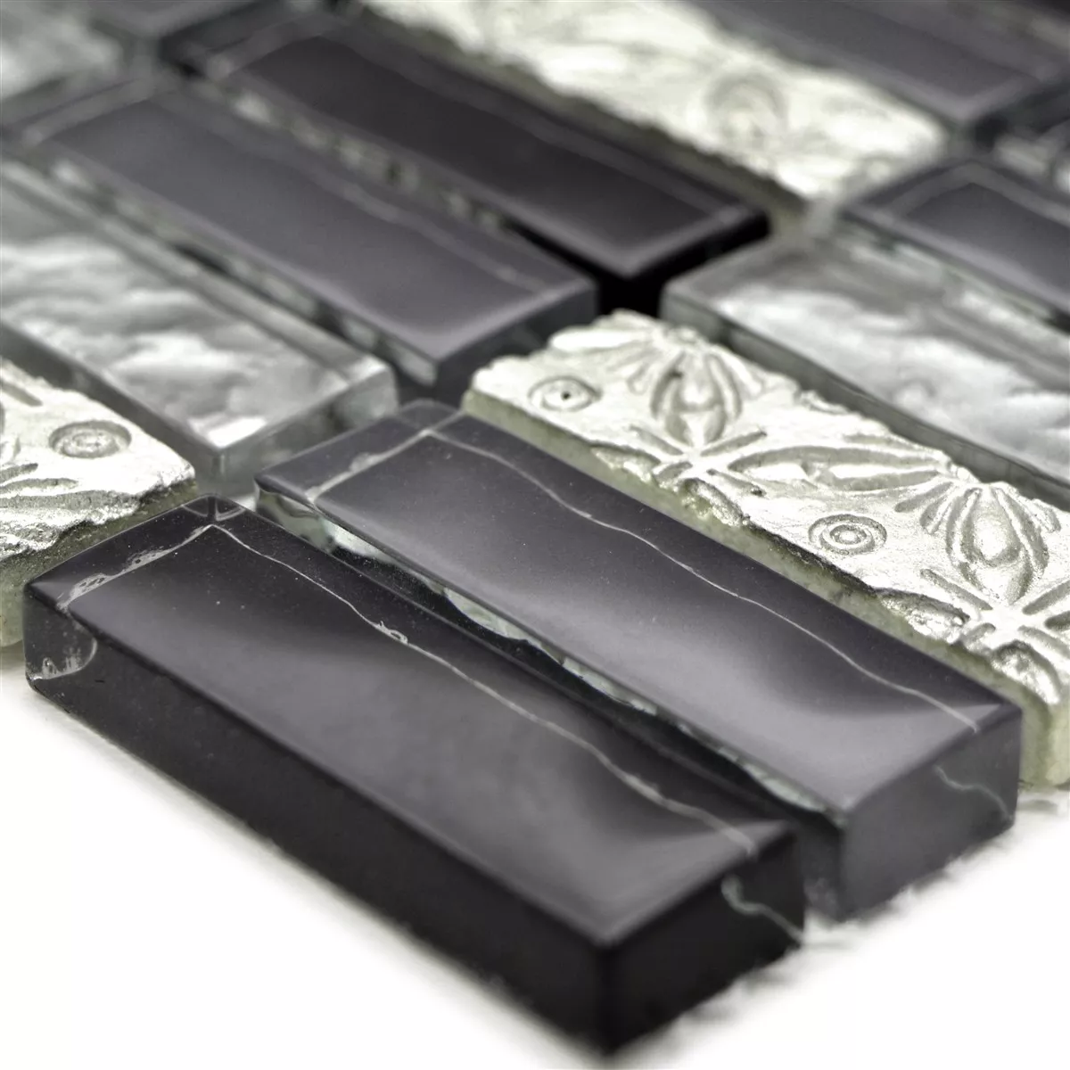 Vzorek Skleněná Mozaika Dlaždice Z Přírodního Kamene Conchita Černá Stříbrná