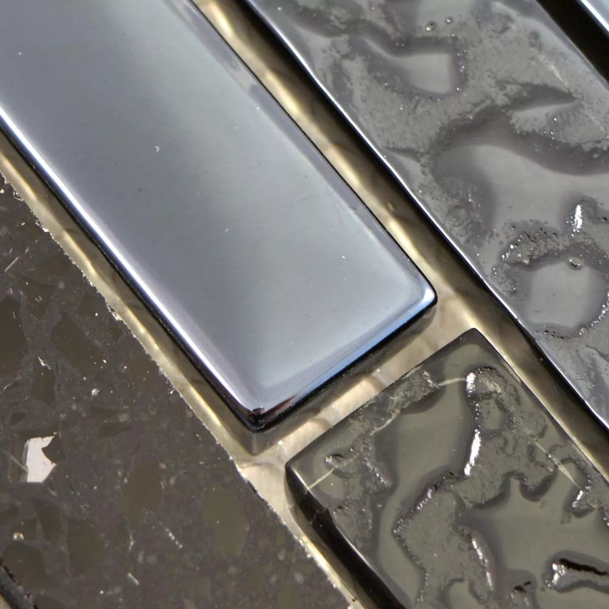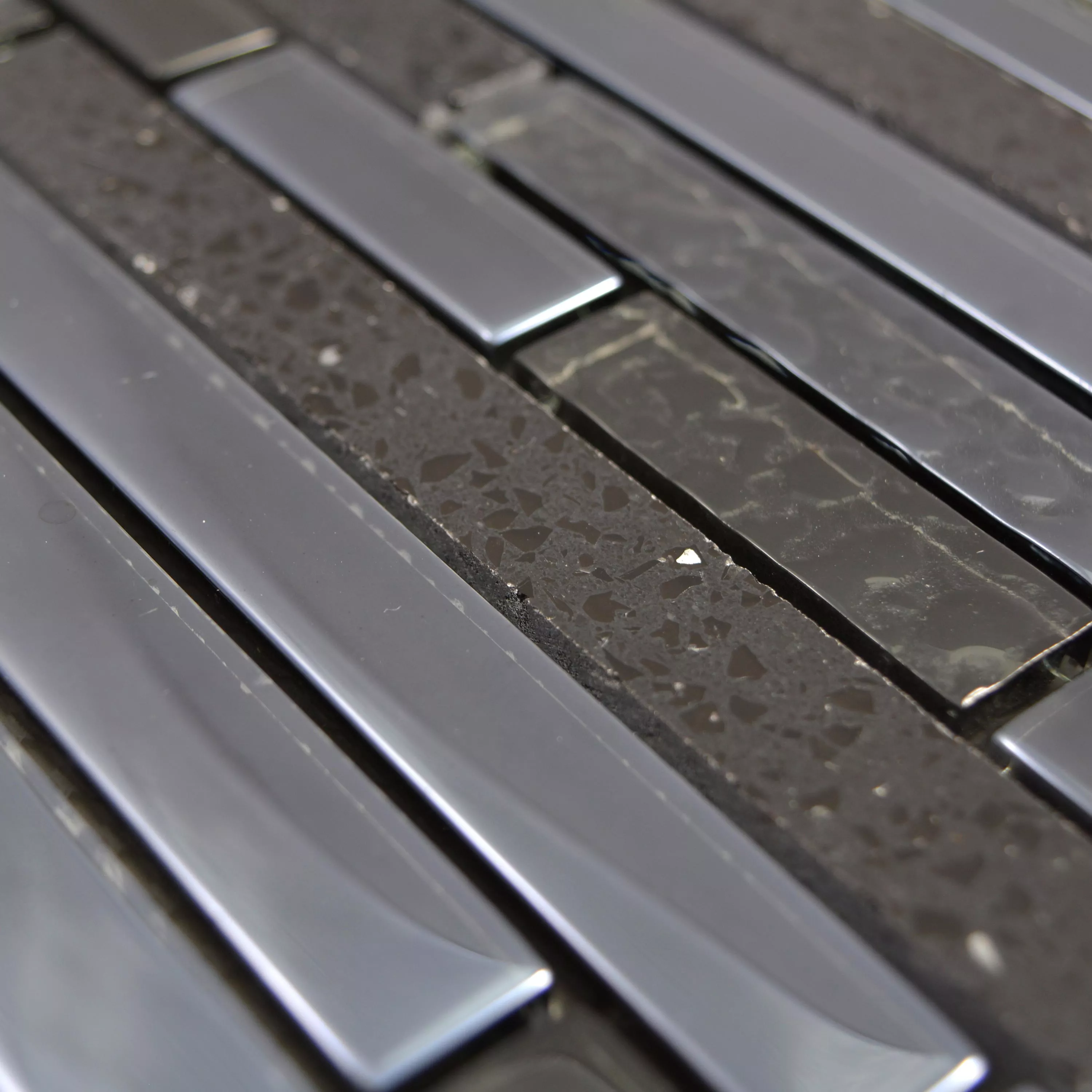 Vzorek Sklo Kámen Nerezová Ocel Mozaika Wilmont Černá Stříbrná