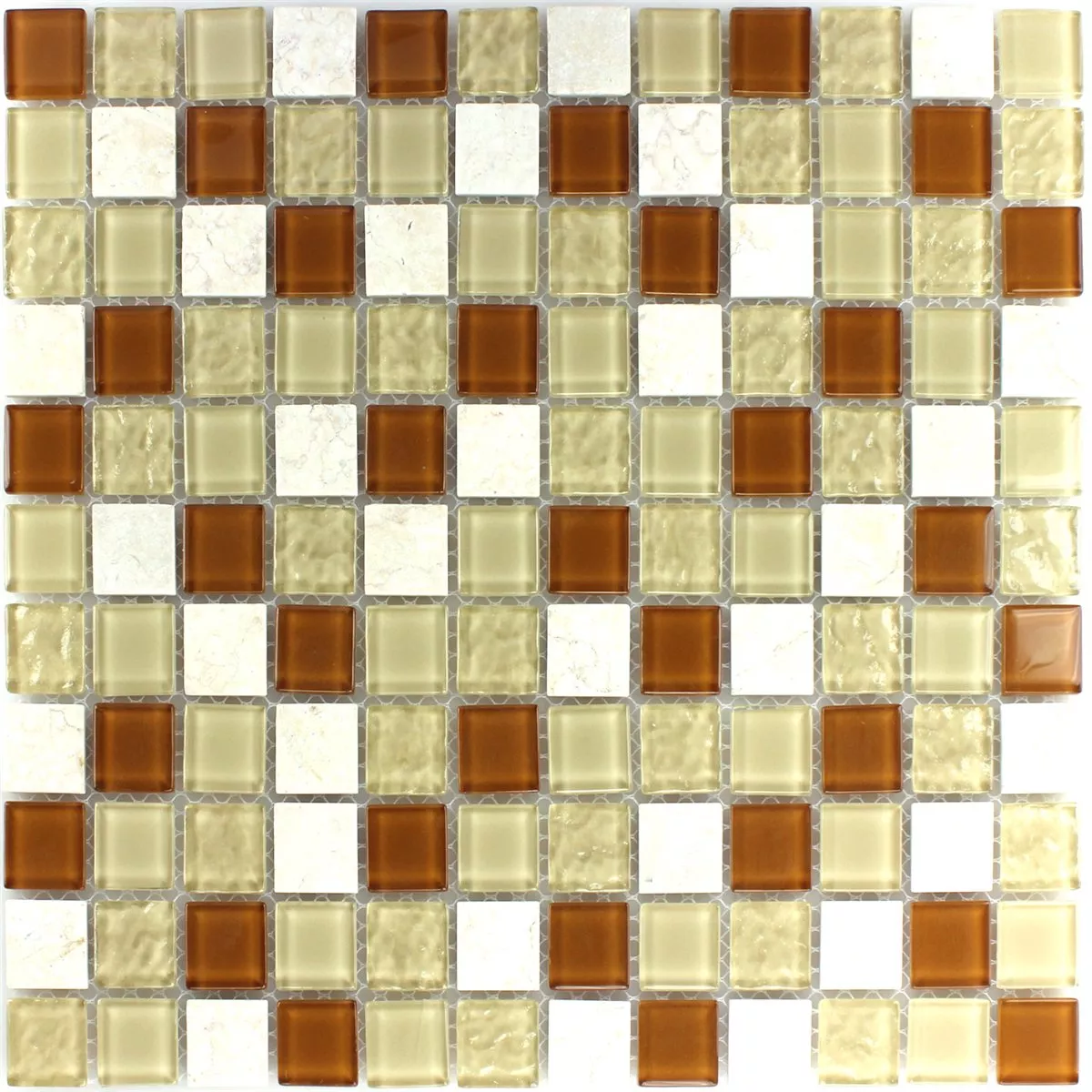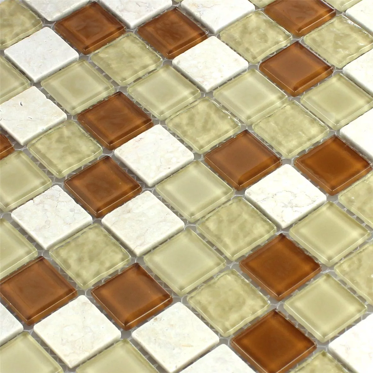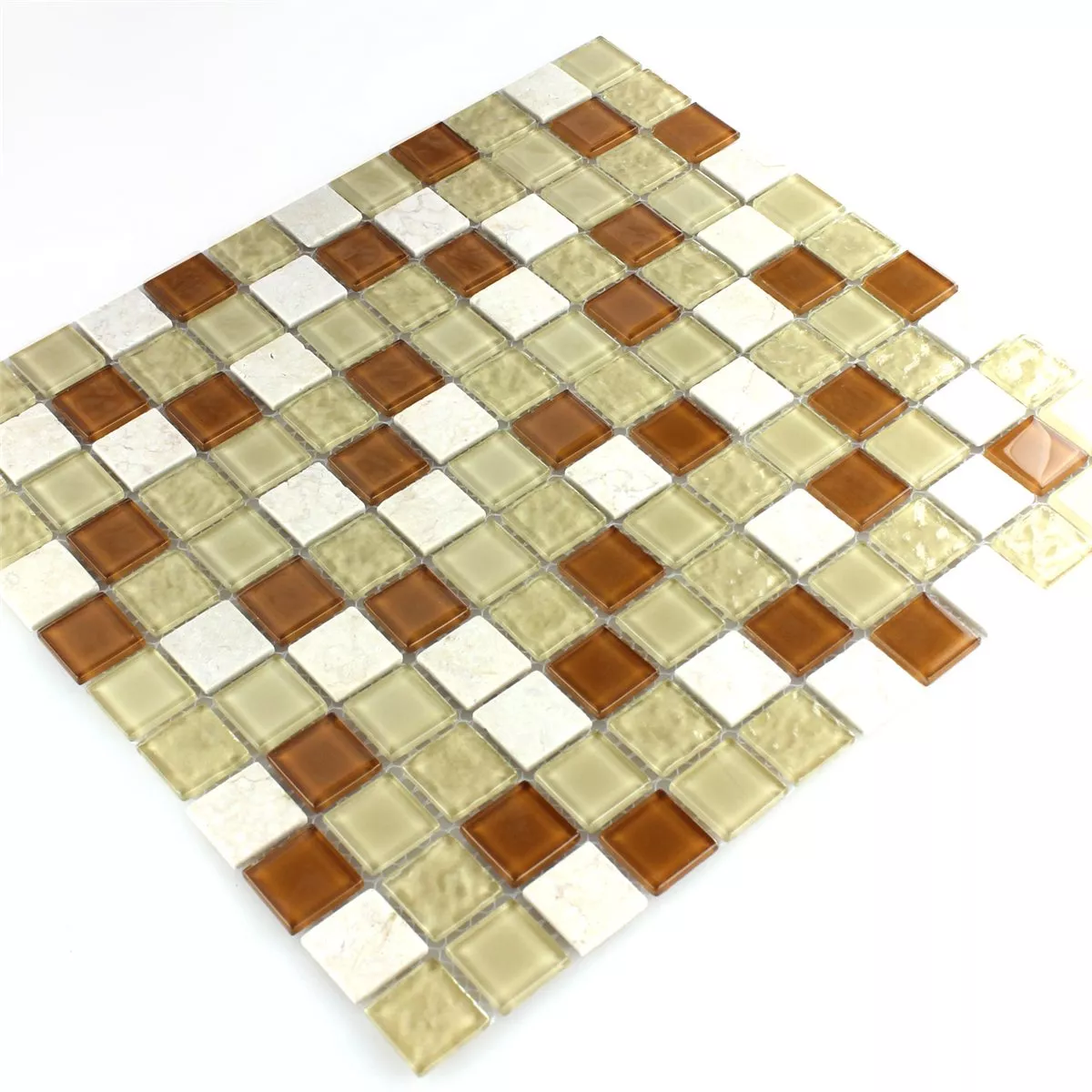 Vzorek Sklo Mramor Přírodní Kámen Mozaiková Dlaždice Epsilon Béžová Hnědá Bílá