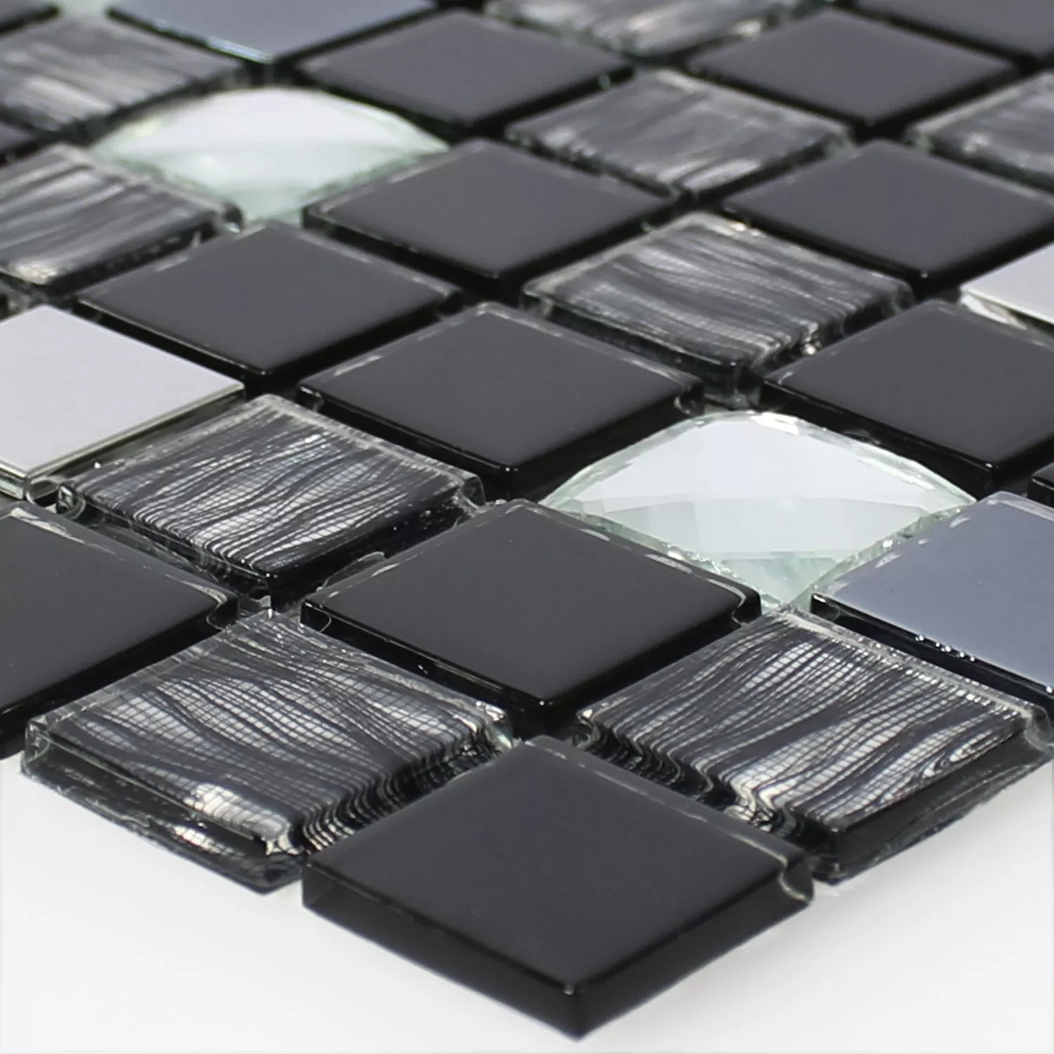 Vzorek Sklo Nerezová Ocel Mozaiková Dlaždice Samolepicí Černá Stříbrná