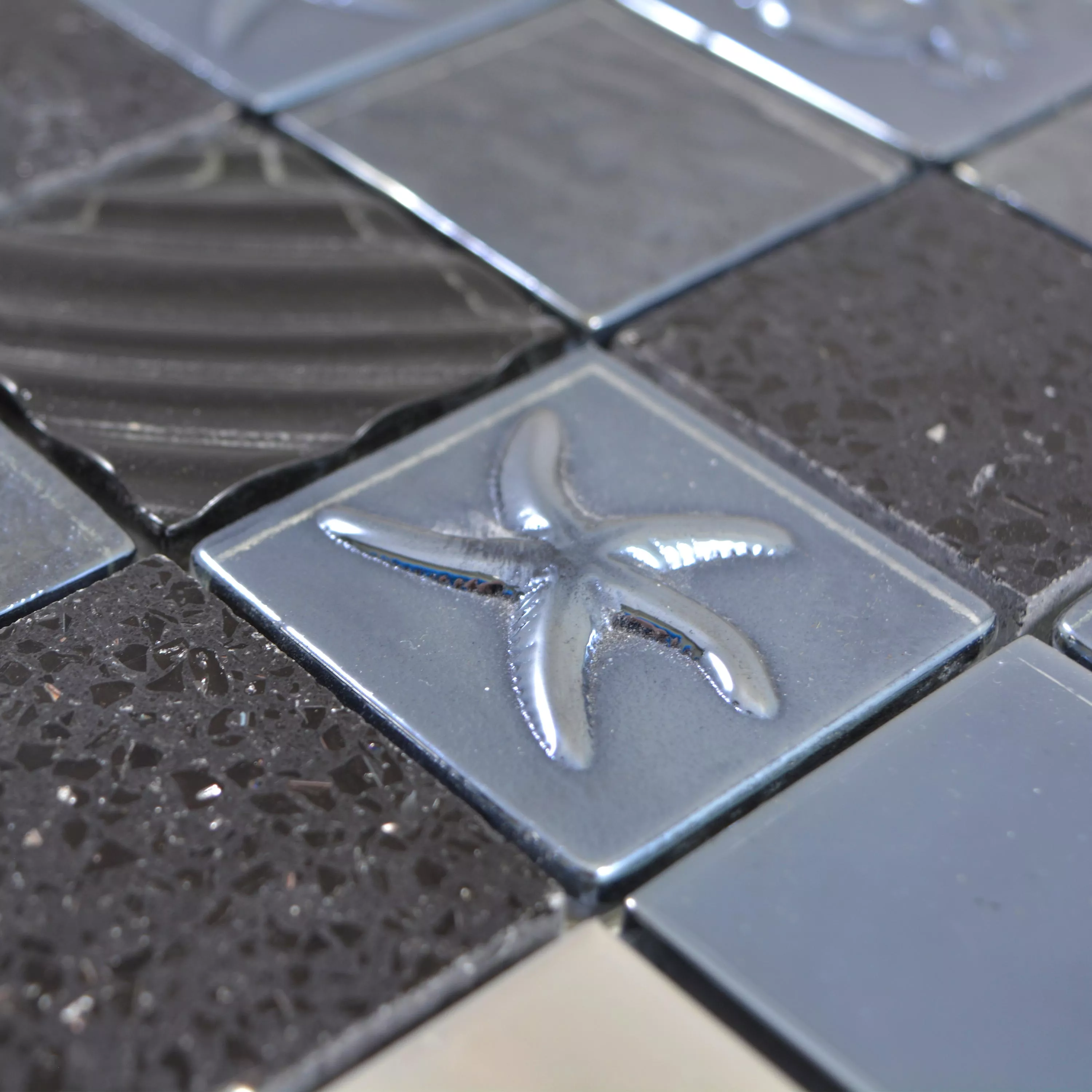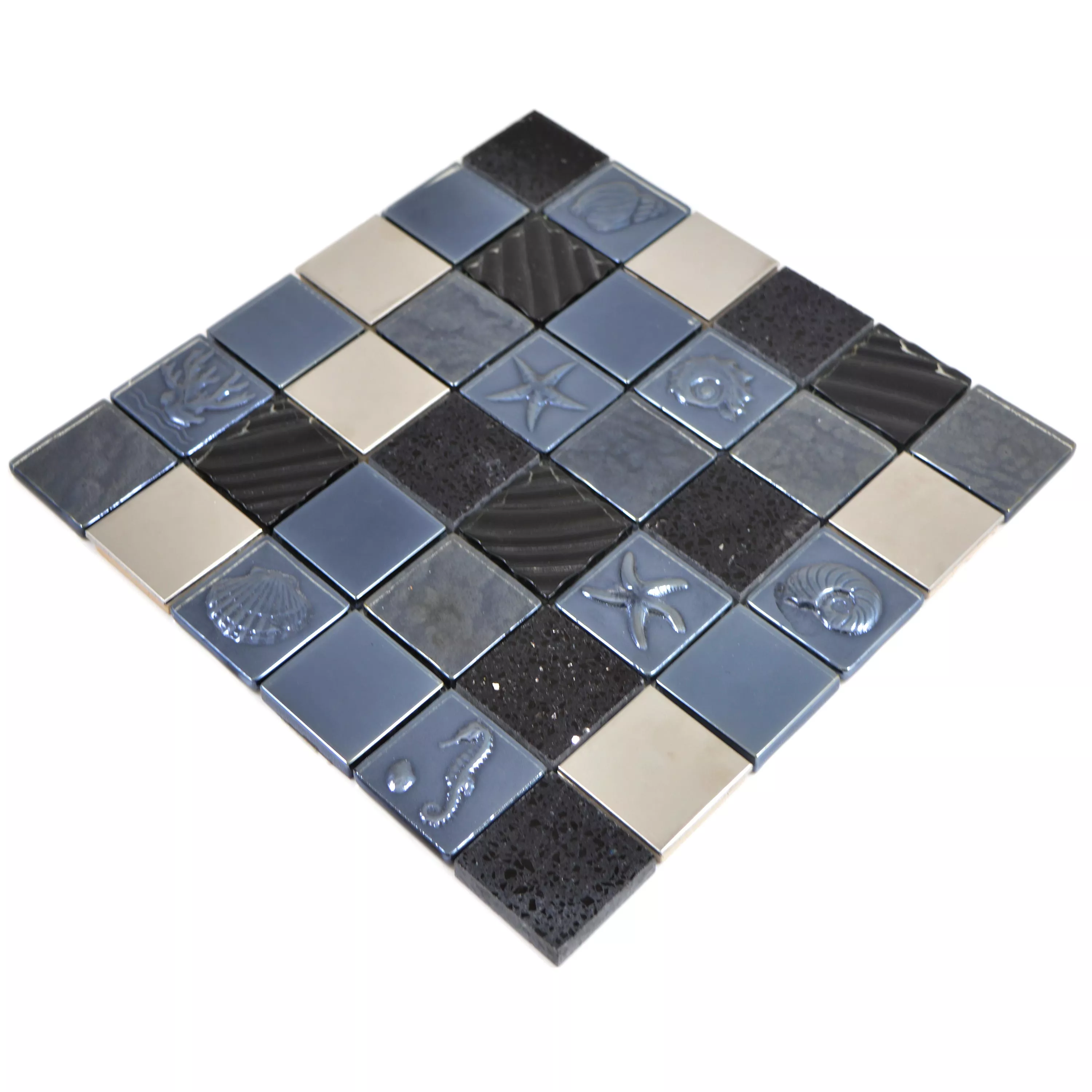 Vzorek Sklo Nerezová Ocel Přírodní Kámen Mozaiková Dlaždice Emporia Černá Stříbrná