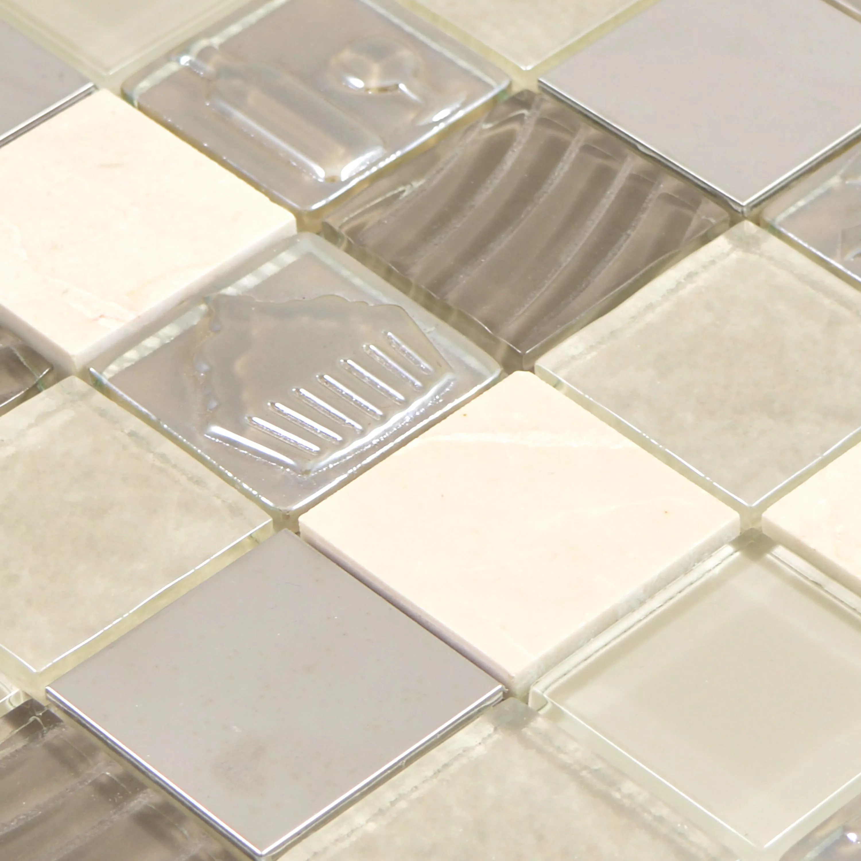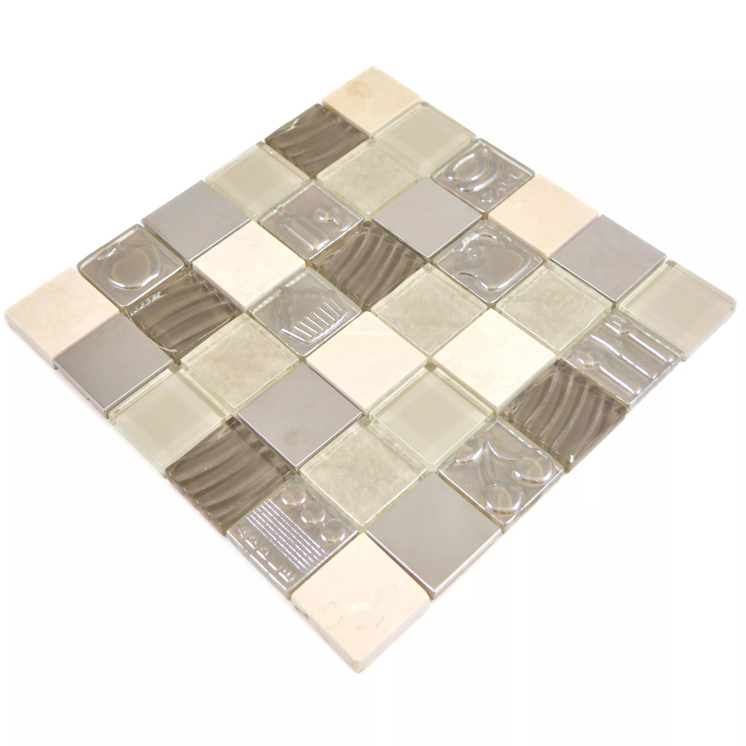 Vzorek Sklo Nerezová Ocel Přírodní Kámen Mozaiková Dlaždice Emporia Hnědá Béžová Stříbrná