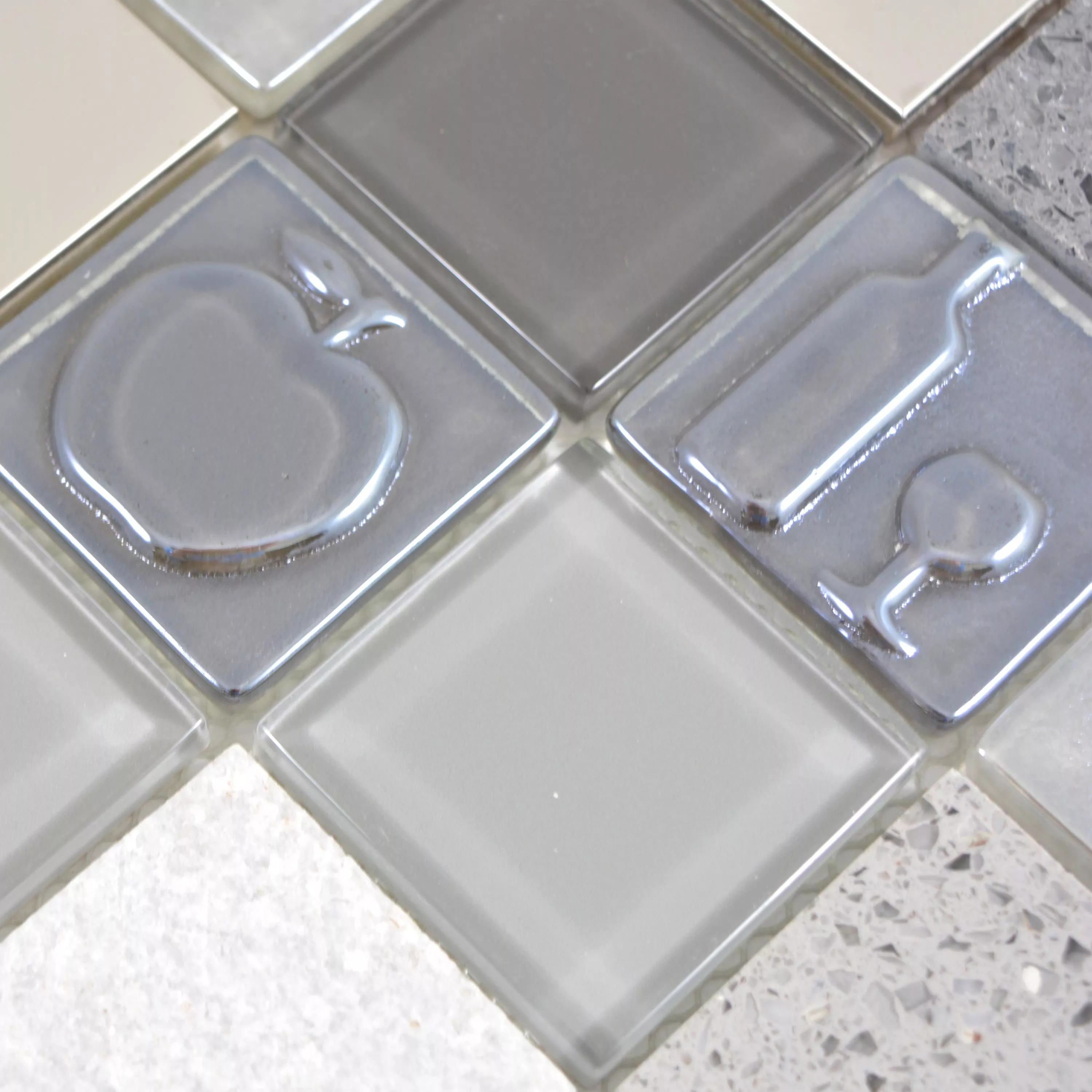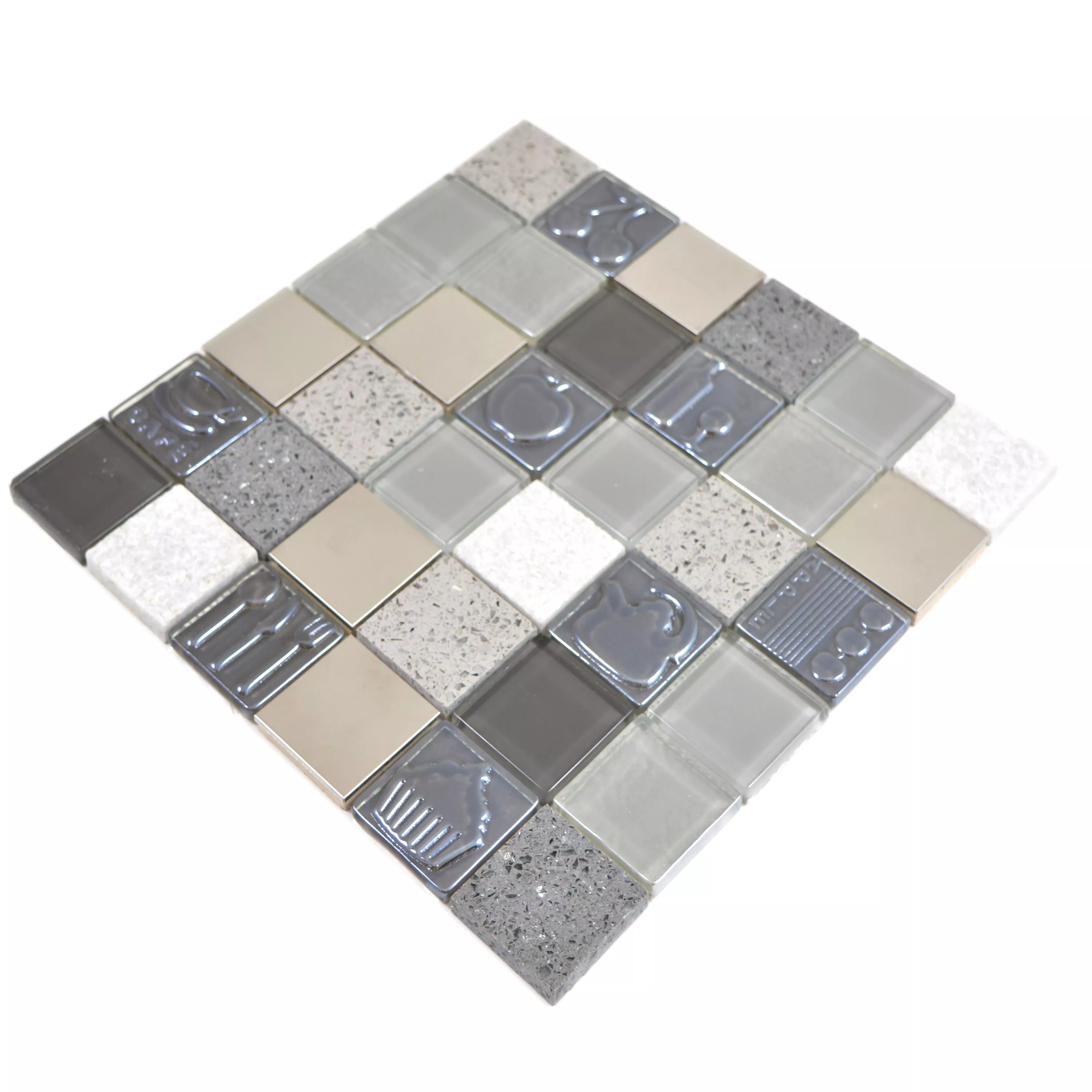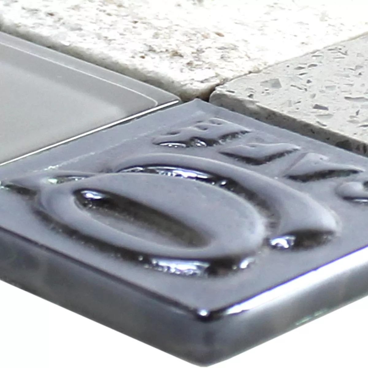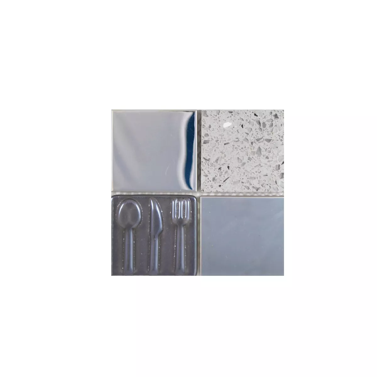 Vzorek Sklo Nerezová Ocel Přírodní Kámen Mozaiková Dlaždice Emporia Šedá Stříbrná