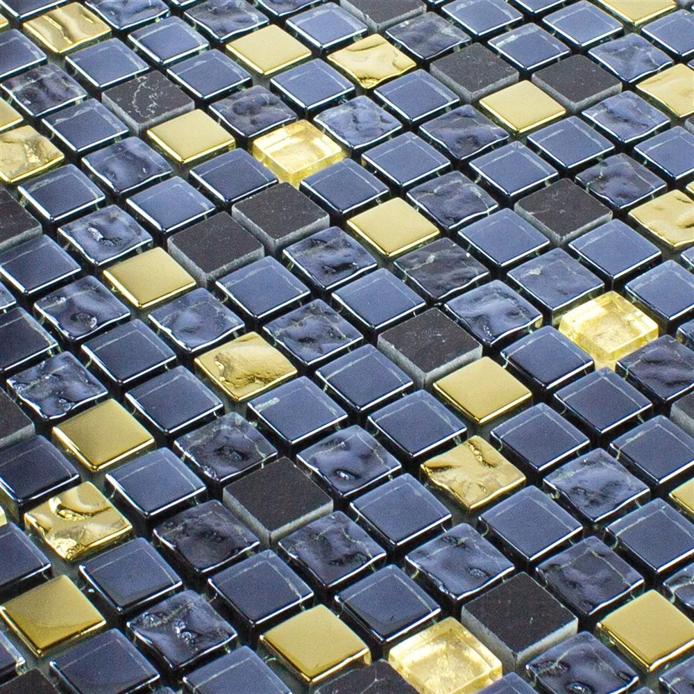Vzorek Sklo Přírodní Kámen Keramická Mozaika Cooktown Černá Zlatá