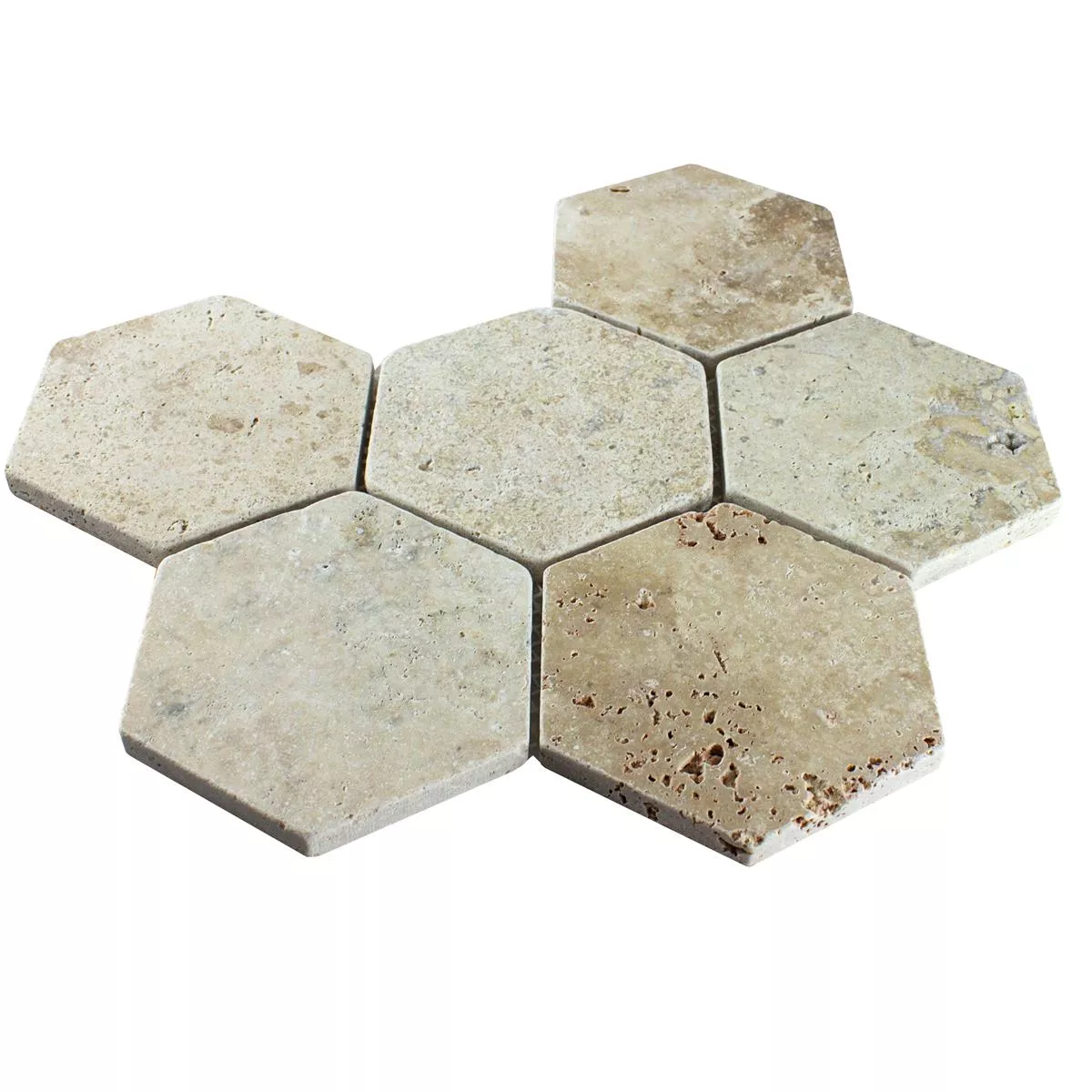 Z Travertinu. Přírodní Kámen Mozaiková Dlaždice Mercado Šestiúhelník Béžová